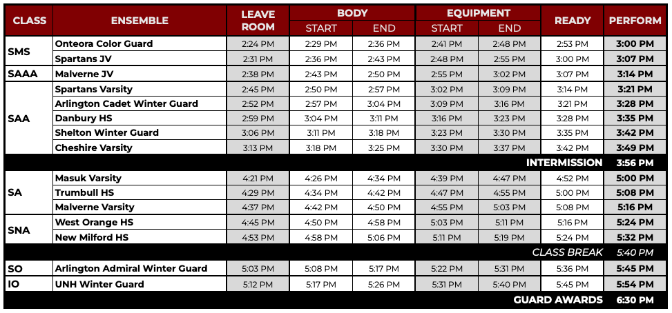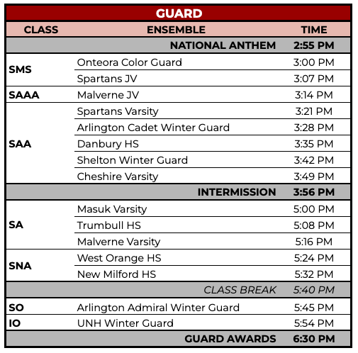 For this event, critique will be available for: guard ensembles in A, National A, and Open classes.