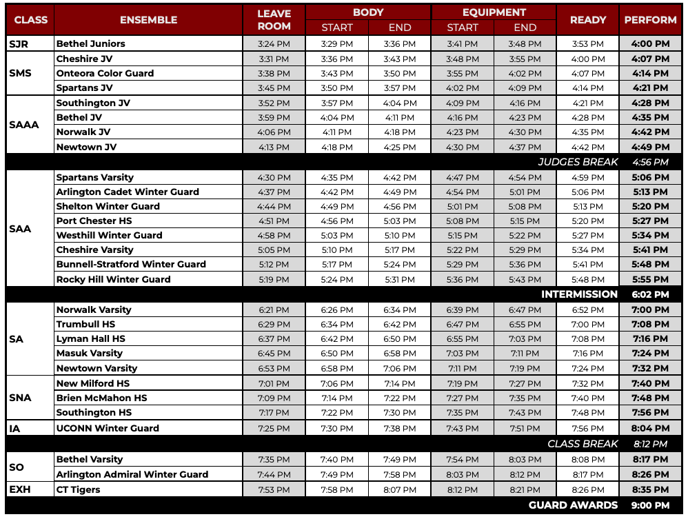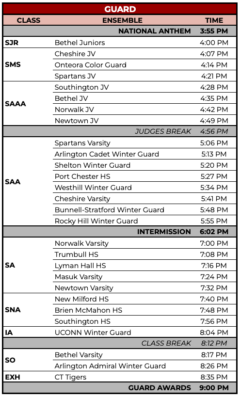 For this event, critique will be available for: guard ensembles in A, National A, and Open classes.