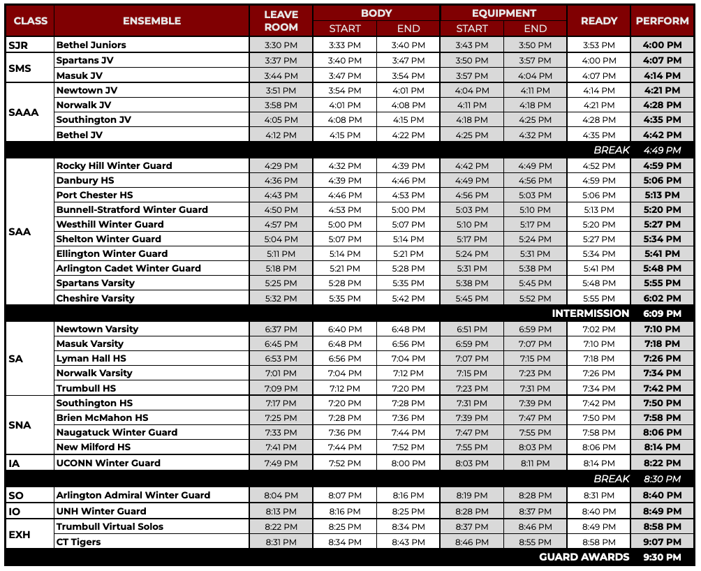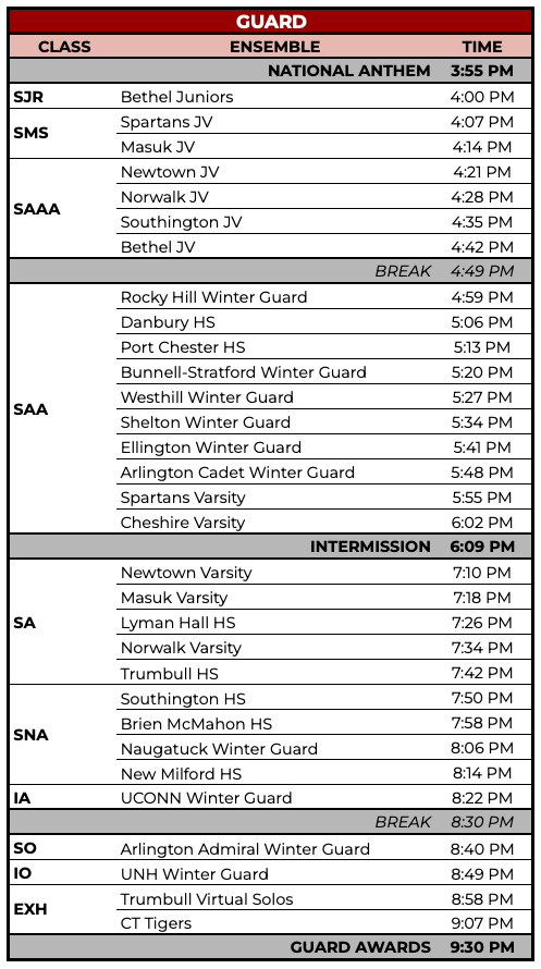 For this event, critique will be available for: guard ensembles in Jr, MS, AAA, and AA classes.